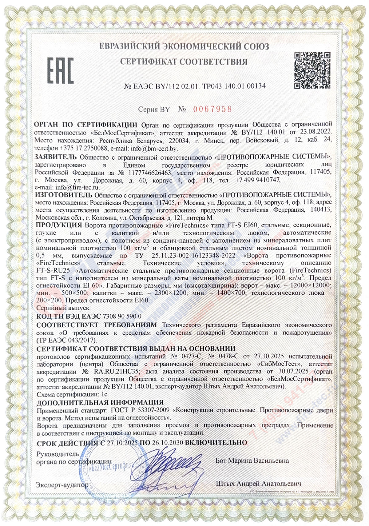 ГК Firetechnics закончила замер, производство и монтаж следующей продукции: [...]